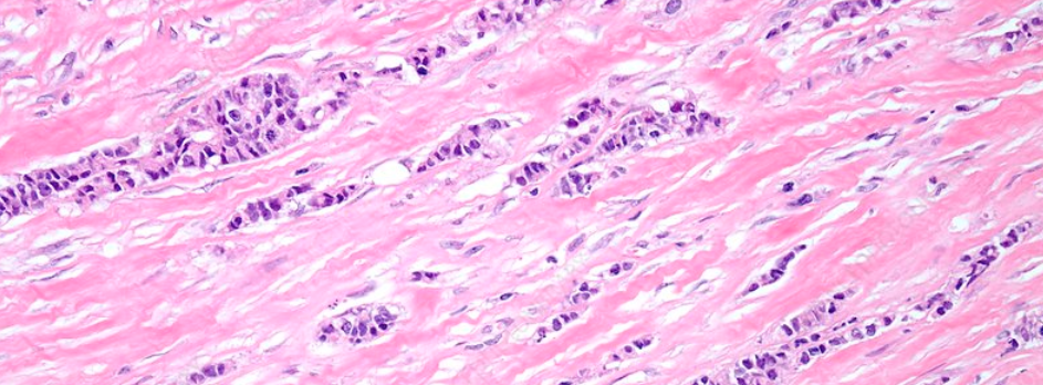 Most lobular tumours lack a protein called E-cadherin, which normally helps cells stick together. The absence of this protein in ILC causes the cancer cells to spread out individually and in thin lines, rather than forming a lump.