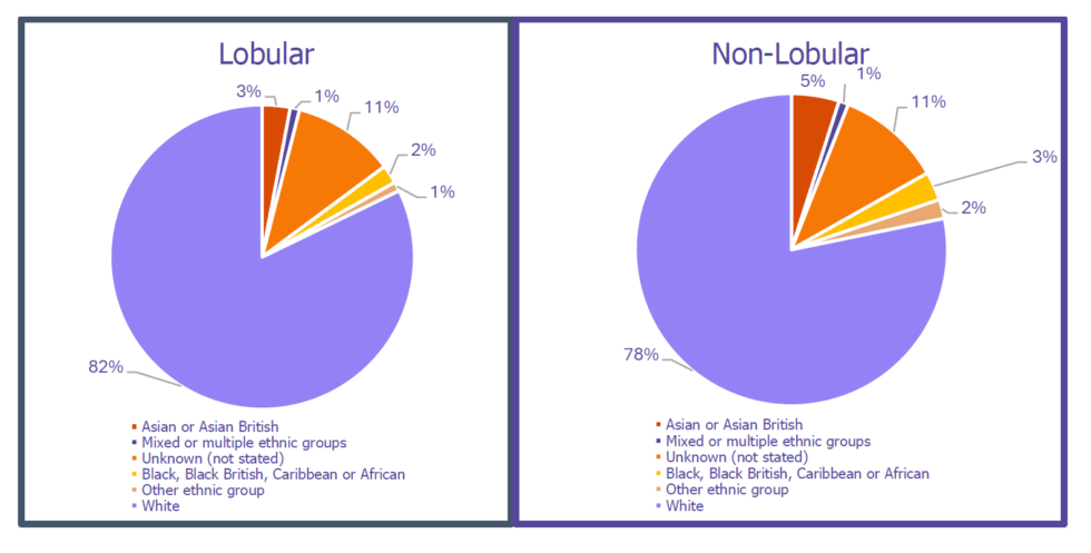 The data clearly shows that Lobular is not a rare disease and affects around 15% of everyone with a breast cancer diagnosis in England.